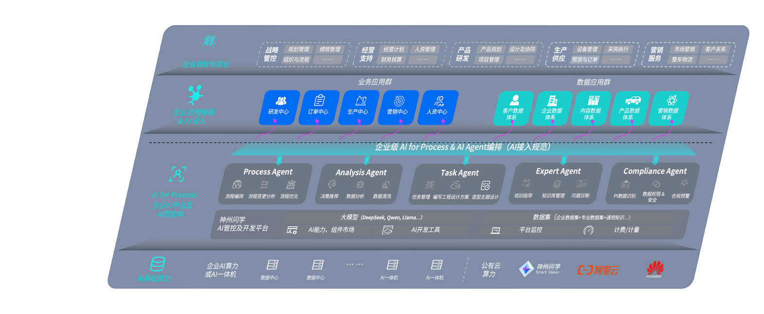壹号平台问学智车解决方案是一套基于AI技术的汽车行业智能化系统,,,,覆盖从底层算力到顶层AI应用的全栈方案。。。。方案由算力层、、模型层和应用层组成:算力层,,,,方案支持多种一体机配置,,,具备云端灵活部署、、多云适配以及动态优化计算资源的能力;模型层,,,,壹号平台问学平台版提供了企业级AI应用一站式构建与管理平台,,,,支持基于后训练强化技术的汽车企业专属模型的训练、、评测和运营;应用层,,,壹号平台问学DeepSeek版提供包括超级员工、、、智能招采、、、智能营销、、智能客服、、AI for BI等一系列解决方案,,,,可助力汽车行业实现数字化转型,,,让管理更智能、、响应更敏捷。。。。